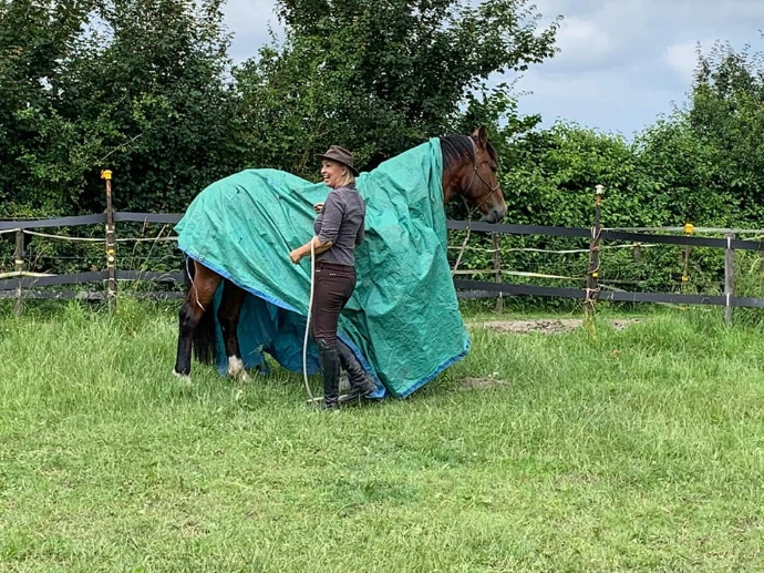Ik kan je helpen met het trainingsgedeelte, dit kan zowel op de grond als in het zadel.